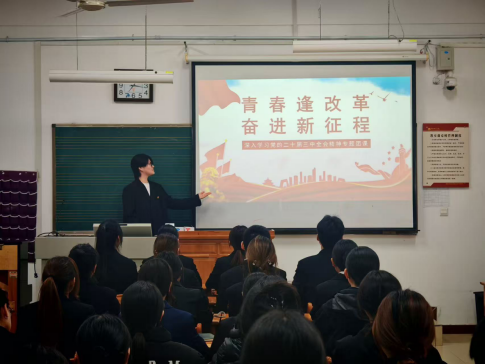 音乐学院团委学生副书记田宇昕以“锚定改革坐标,勇担时代使命” 为主题,带领学员围绕《深入学习党的二十届三中全会精神》深学全会精神,聚焦 “改革” 主线把握盛会精髓:学员们认识到 2024 年 7 月 15 日至 18 日召开的党的二十届三中全会是 “里程碑式” 的改革盛会,其审议通过的纲领性文件为未来 10 多年改革发展绘制清晰蓝图,为破解发展难题提供根本路径;同时解码了全会核心要义,包括 2035 年三大目标、四项改革原则和七大改革领域;并围绕 “青年如何参与改革” 展开讨论,明确青年应做新质生产力的 “生力军” 和民生服务的 “践行者”,在相关领域突破创新、积极参与实践,让改革红利惠及更多群众。