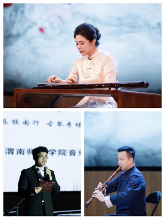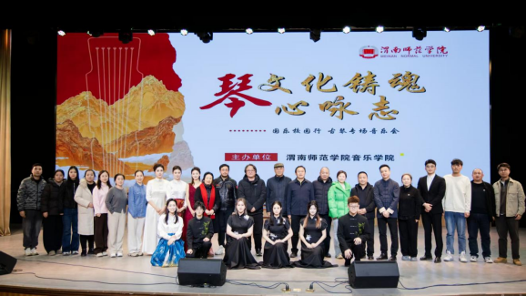 渭南师范学院古琴教师王艺璇携手孙葆滢、王辉、李倩倩、李亚倩、张然等教师联袂登场,带领现场观众完成了一次与中华优秀传统文化的深度对话。音乐会以《文王操》开篇,黄钟大吕之音彰显崇德尚礼的礼乐底蕴;《流水》以双琴合奏与“七十二滚拂”创新技法,演绎出江河奔涌的壮阔气象,承载千古知音佳话与民族哲学思考;《广陵散》则以磅礴张力再现聂政刺韩王的悲壮史诗,回荡浩然正气与侠者情怀。唐代经典古琴曲亦精彩呈现,《梅花三弄》以梅花傲雪之姿喻君子高洁品格,《阳关三叠》以三叠迂回的形式深化惜别之情,将“劝君更尽一杯酒”的意境刻画得淋漓尽致。结尾的《关山月》以古琴、琵琶与人声交织,致敬中国人民抗日战争暨世界反法西斯战争胜利80周年,奏响民族精神与和平愿景的礼赞。整场演出以经典曲目为脉络,让观众感受中华优秀传统文化的深厚底蕴与艺术魅力。