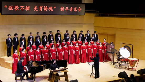 2025年12月29日,渭南师范学院“弦歌不辍 美育铸魂”——新年音乐会在逸夫楼音乐厅举行。新年音乐会由音乐学院、莫斯科艺术学院、渭南市音乐家协会主办、渭南市文学艺术界联合会担任艺术指导,青墨筝团、交响乐团、合唱团及专业师生联袂献艺。副校长王海峰、统战部部长张勤恳出席活动。