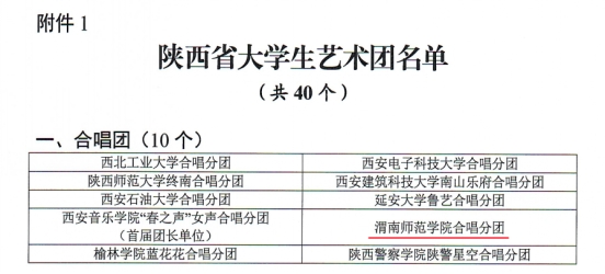 近日陕西省教育厅印发《关于成立陕西省大学生艺术团的通知》(陕教体办〔2025〕8号),由我校音乐学院组织申报的“渭南师范学院合唱团”成功入选,被认定为陕西省大学生艺术团合唱分团之一。此次获批,标志着我校在展示高校美育成果、推动新时代学校美育高质量发展、全面落实立德树人根本任务的进程中迈出了坚实一步。