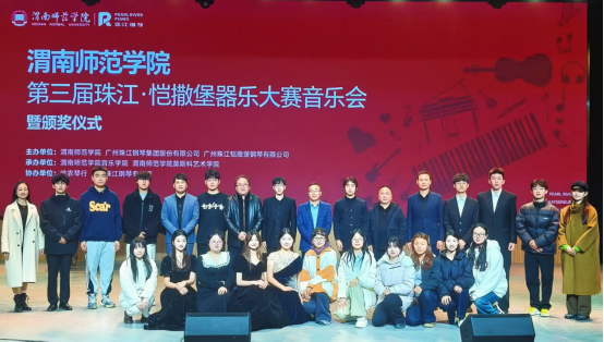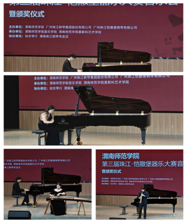 最后,由广州珠江钢琴恺撒堡公司党委副书记、总经理李富龙,渭南师范学院音乐学院党总支书记白锐,渭南师范学院音乐学院副院长逯克刚,渭南市哈农琴行总经理李哲,渭南珠江钢琴专卖店经理张卓为获奖选手颁奖。