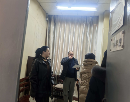 检查组先后深入琴房、舞蹈房、排练厅、教室、演艺厅、服装库、乐器库等重点场所,按照“全覆盖、零容忍、重实效”原则,重点检查仪器设备运行状态、电路线路安全、消防设施配置等关键环节。针对舞蹈房及教室的电脑主机、音频接口等设备的用电安全,演艺厅的麦克风、调音台等器材的维护保养,以及乐器、服装存放室的温湿度控制、防火措施等进行细致核查,逐一排查潜在安全隐患。